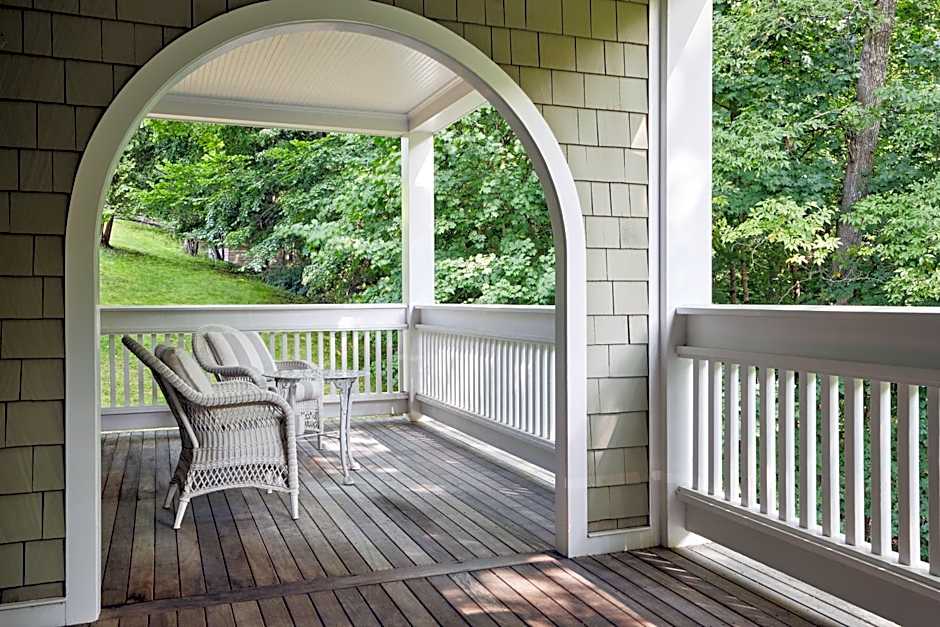 French doors open to an outdoor seating area in this room. Styled in mid-century modern white on white decor, gray accents with pops of teal, purple or orange are featured in this room. A white vessel sink and a glass shower is featured in the private bathroom. Free WiFi, a flat-screen satellite TV and other modern amenities are provided. Apple TV is included.